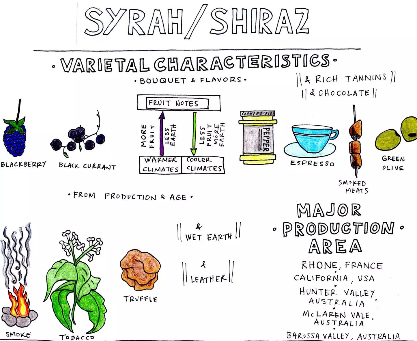 与赤霞珠(Cabernet Sauvignon)或黑皮诺(Pinot Noir)相比,西拉(Syrah/Shiraz)这一品种算不上大众情人。喜欢西拉的人对此品种可以说是溺爱有加,但这些人只占少数。也许你了解北罗纳河谷优雅的西拉,澳洲奔放的西拉,那么意大利、西班牙、美国、智利、新西兰的西拉你又知多少?